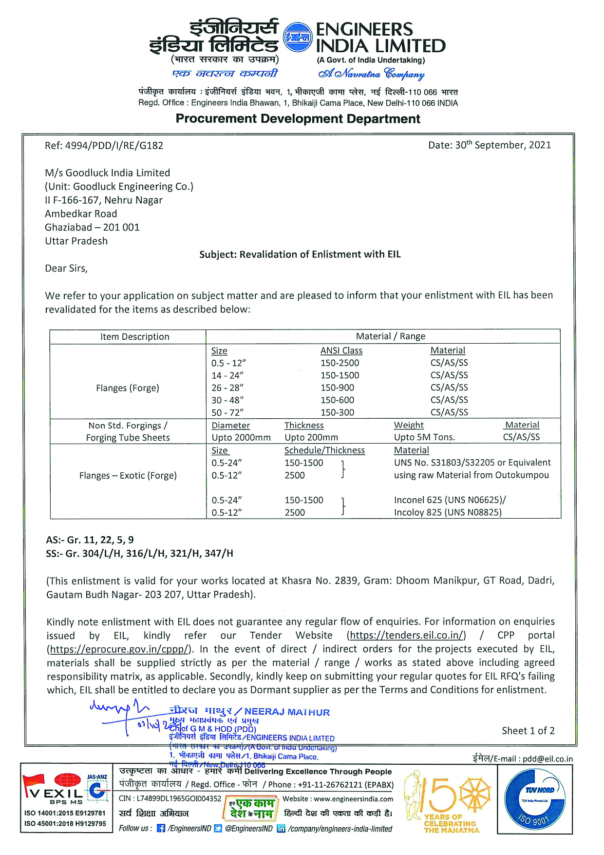 Goodluck India Limited (GIL) is a diversified engineering company, delivering high-quality steel and engineering solutions that power some of the most critical industries. With a strong presence in Defense, Aerospace, Infrastructure, Automotive, Energy, and Engineering, the Company has positioned itself as a trusted partner for both domestic and global clients.